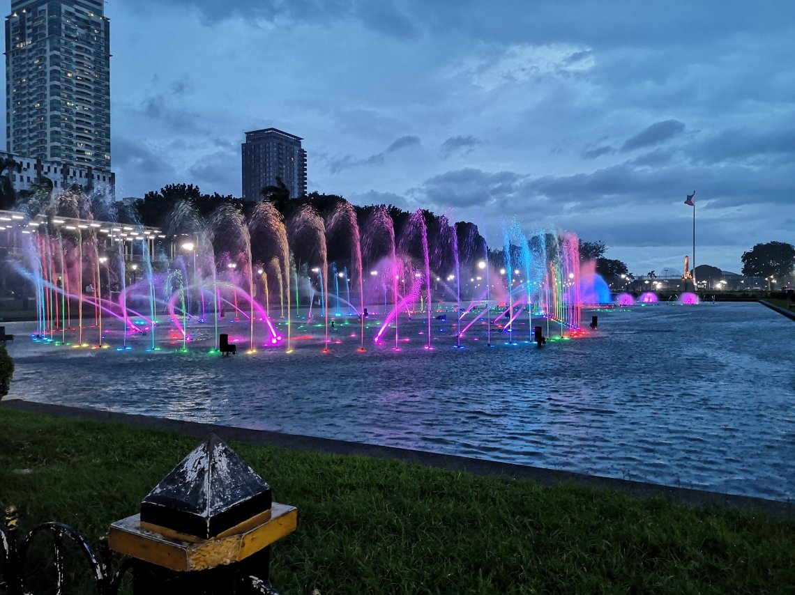 Puis retour à travers Intramuros pour assister, sous la bourrasque, aux jeux d’eau du parc.