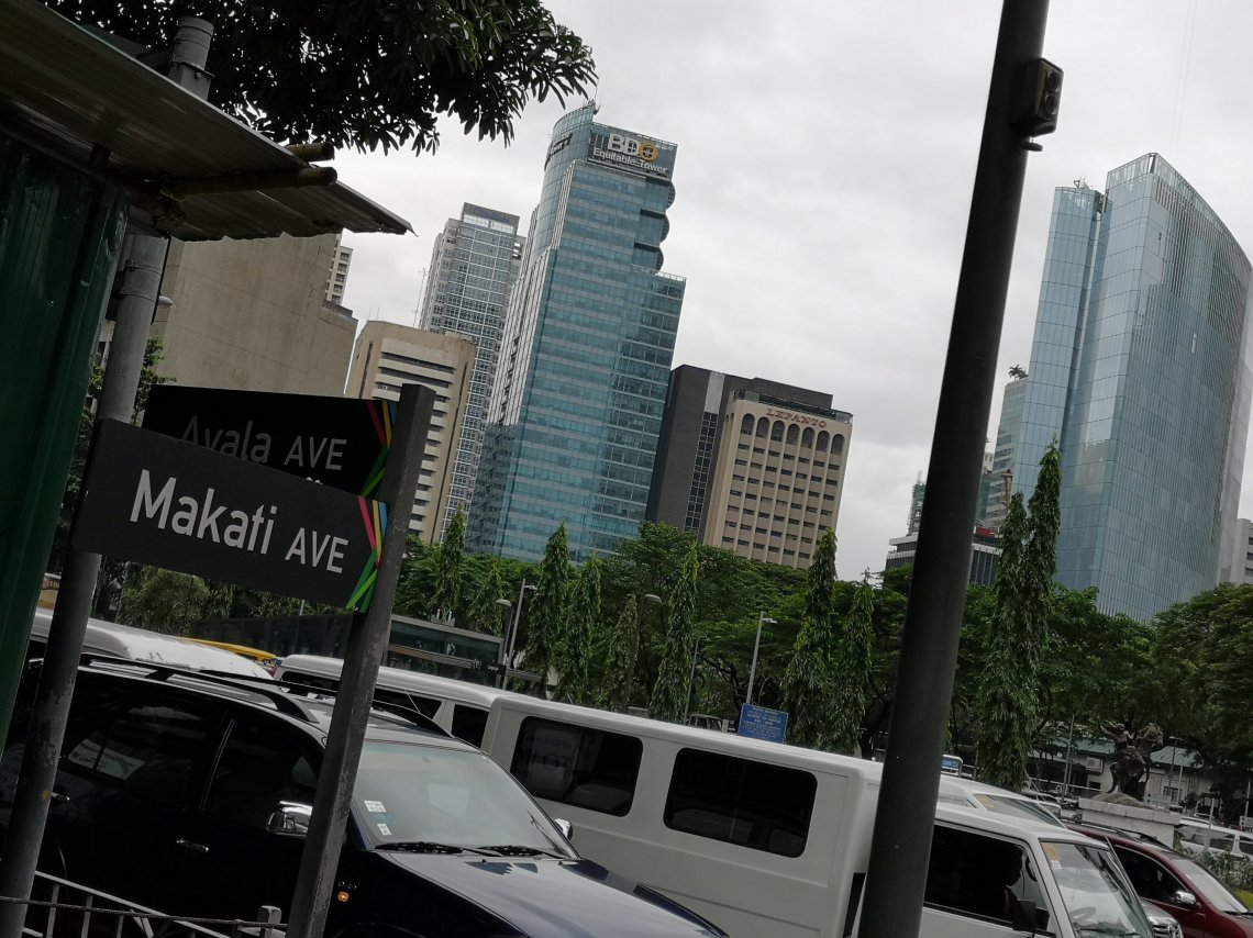Aujourd’hui, découverte du quartier de Makati : les sièges des entreprises, le lieu de vie des expats qui, paraît-il, n’en sortent guère. Encore plus un autre monde qu’hier : encore plus propre, encore plus rutilant, on se croirait à Tokyo, ou à Singapour, ou à Hongkong. Le piéton ne circule plus dans la rue, laissée au seul trafic (mais attention, plus de tricycles ici, pas le moindre tuktuk, et le seul jeepneys est une sorte de navette qui roule dans le quartier quasiment pour le folklore) des grosses voitures toutes propres ; à pied donc, on circule en l’air, sur des passerelles qui permettent à la fois d’éviter la rue et de passer de SM en SM. Belles passerelles, d’ailleurs, qui tiennent à l’abri également et du soleil et de la pluie.