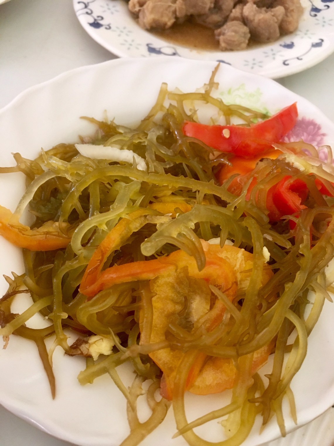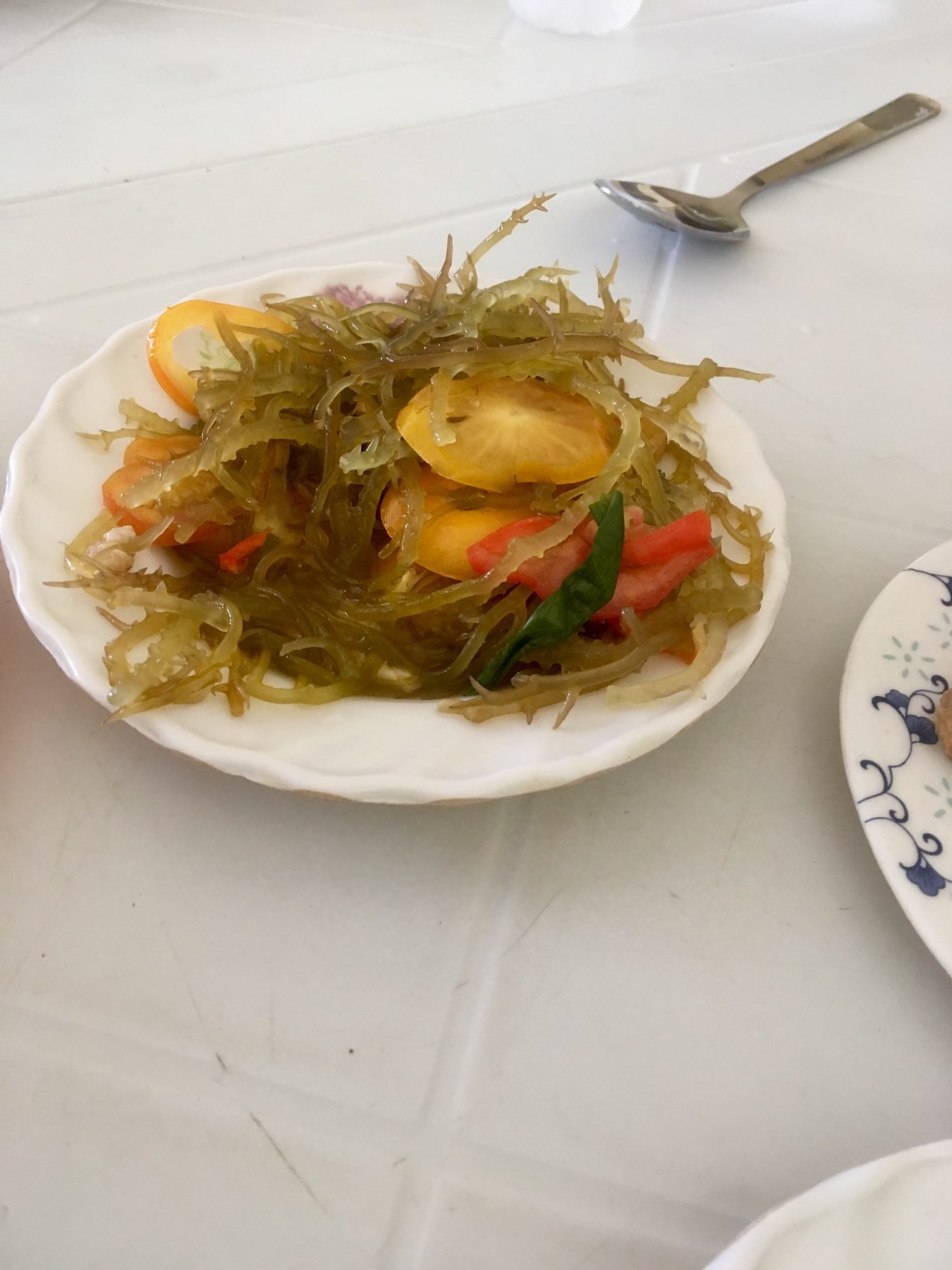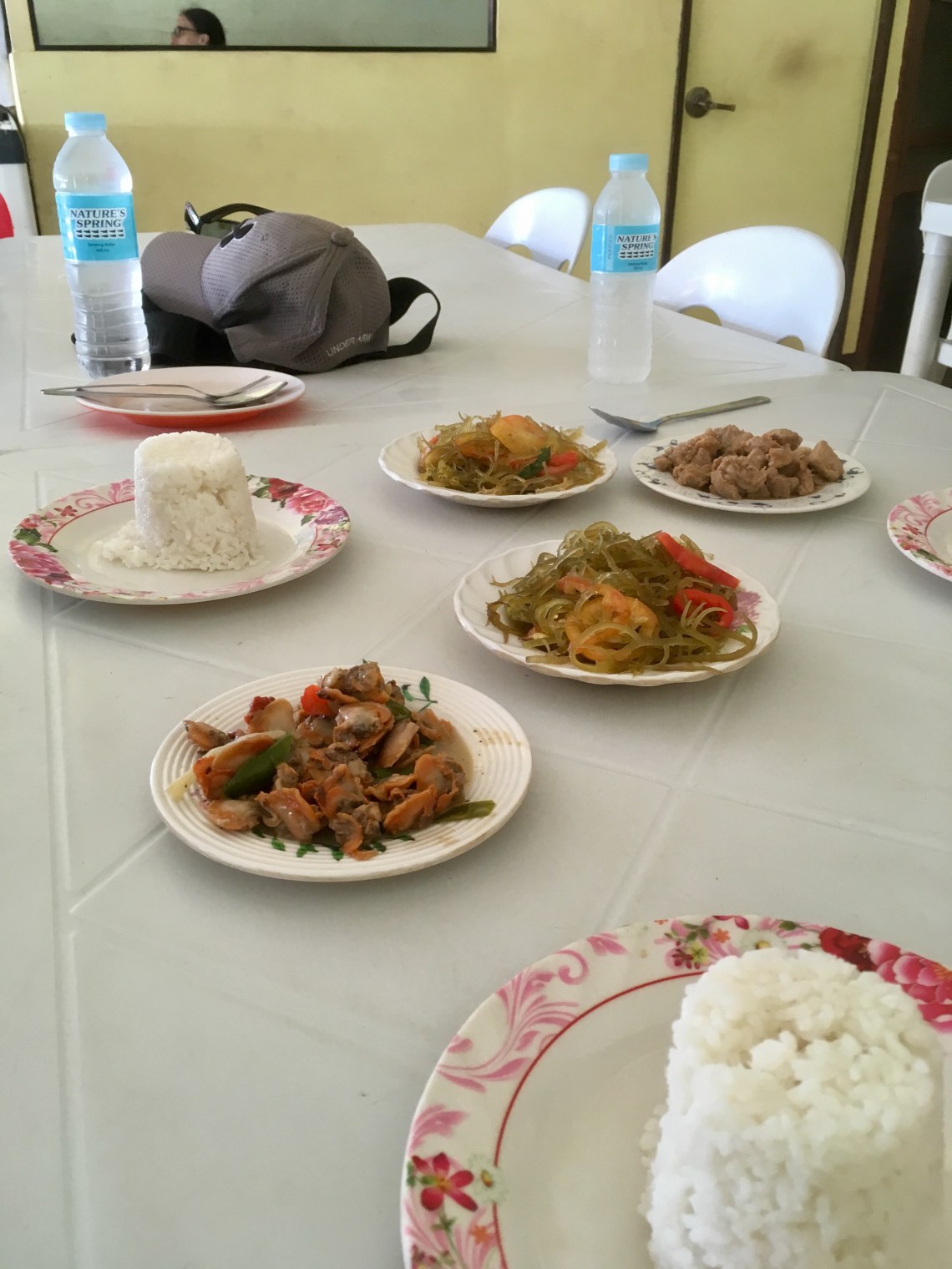 On ira casser la croûte du midi dans une cantine : ces petits restau de bord de route où on mange des petites portions de tout : des coquillages, de la viande, des algues au vinaigre. 210 pesos pour 3 personnes c’est 3€50…