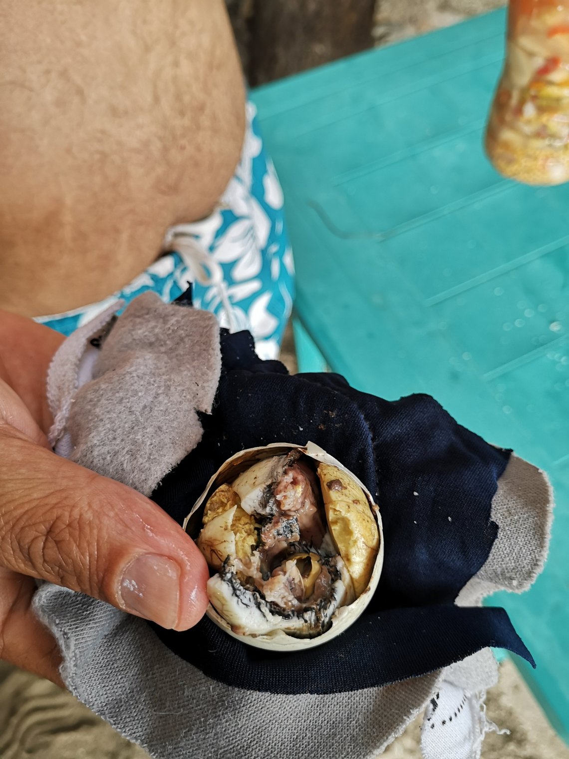 Tu y as goûté finalement à l’œuf habité ? Beurkkkk