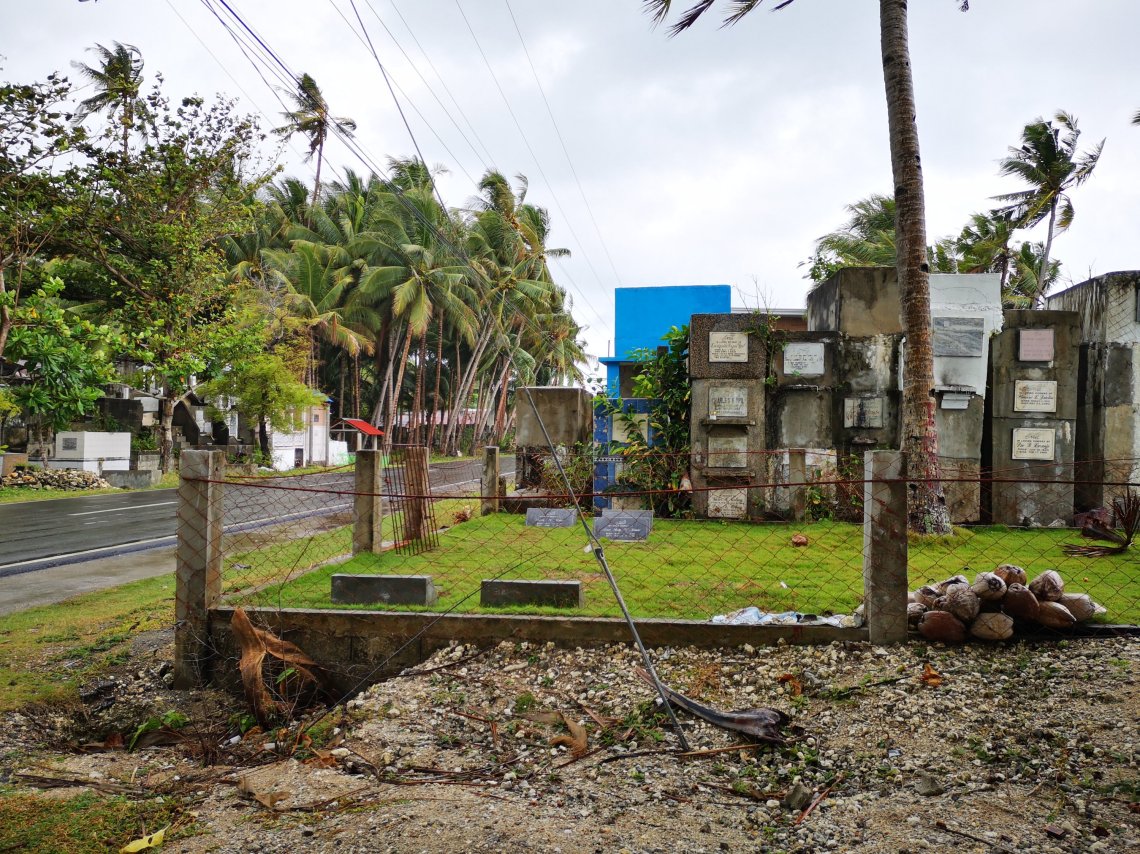On prend le temps de voir de près un cimetière. Il sont toujours en bord de route, sans séparation marquée d’avec le monde des vivants