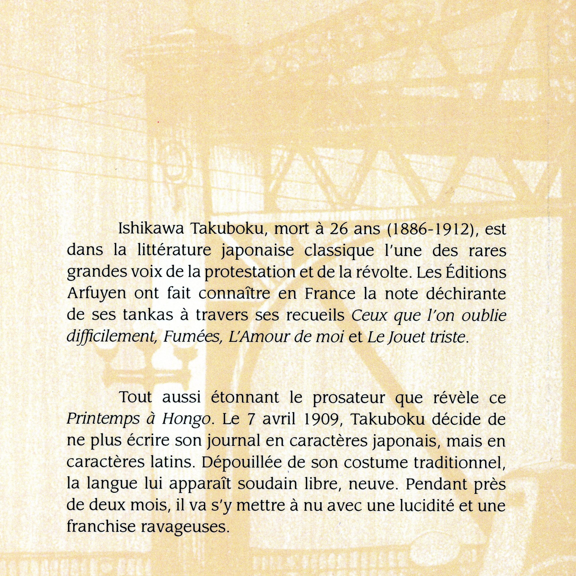 Je découvre ce « Journal en caractères latins » écrit par un jeune auteur, Ishikawa Takuboku, mort en 1912, à 26 ans.