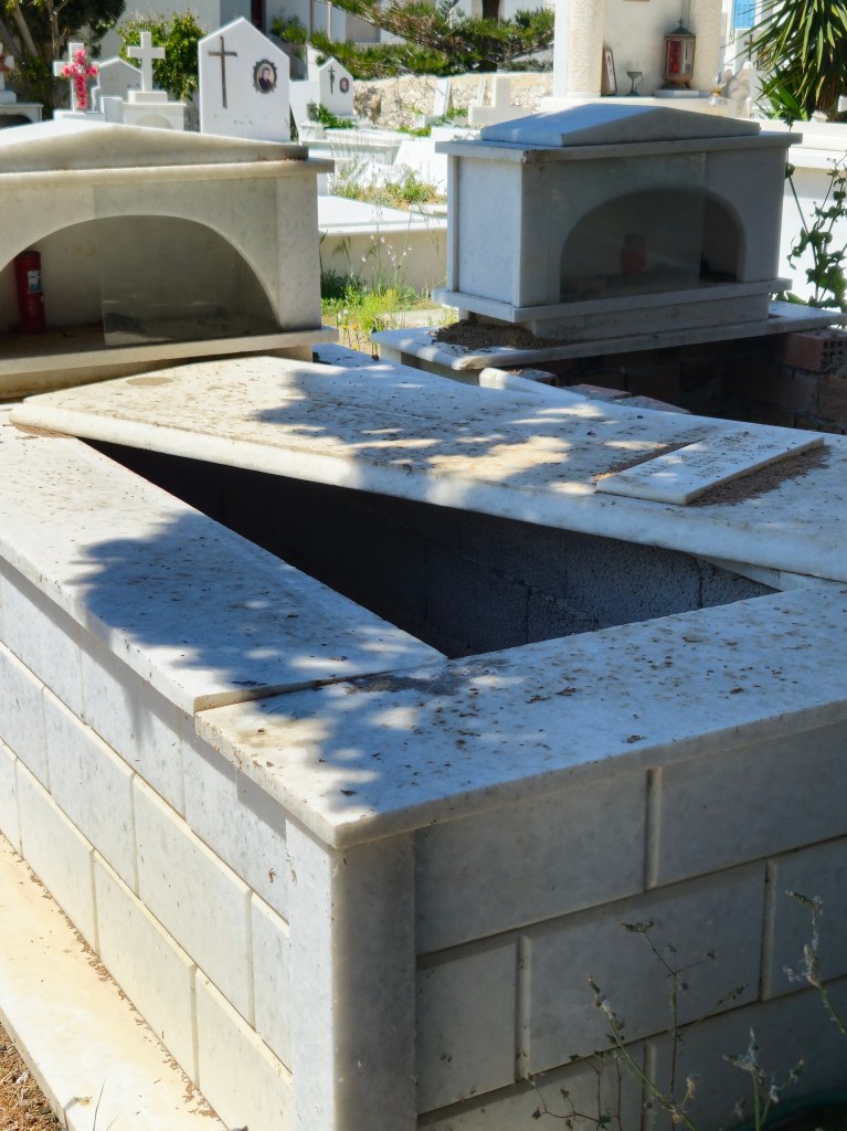 Pâques encore : visite d’un petit cimetière qui laisse une impression étrange. La plupart des tombes sont vides et éventrées. Comme si une résurrection générale avait eu lieu.