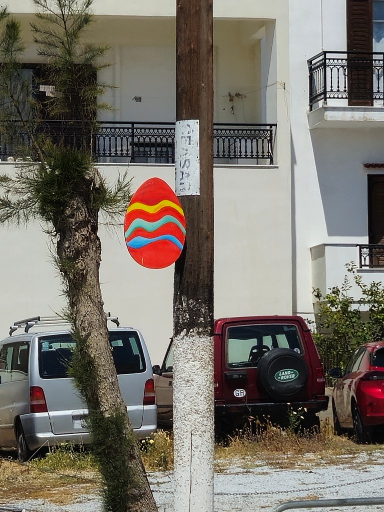 Sinon, c’est Pâques (oui !) Messe du jeudi saint ce soir. Qui commence à 19h. On part 40 minutes après, on fait comme tout le monde, on rentre et on sort de l’église. On finit par aller dîner. Au retour, vers 21h30, la messe bat encore son plein, l’assistance a plus que doublé. Tout le monde est en noir. On a sorti devant l’iconostase un crucifié qu’on vient embrasser à la file. Demain, il y aura des processions tristes. Et samedi à minuit, ce sera l’explosion de joie car Χρίστος ανέστη le Christ sera ressuscité. On s’embrassera au milieu des pétards avant d’aller rompre les 40 jours de jeûne et celui plus sévère encore de la dernière semaine en avalant une soupe bien grasse, bouillon de viande avec du citron.