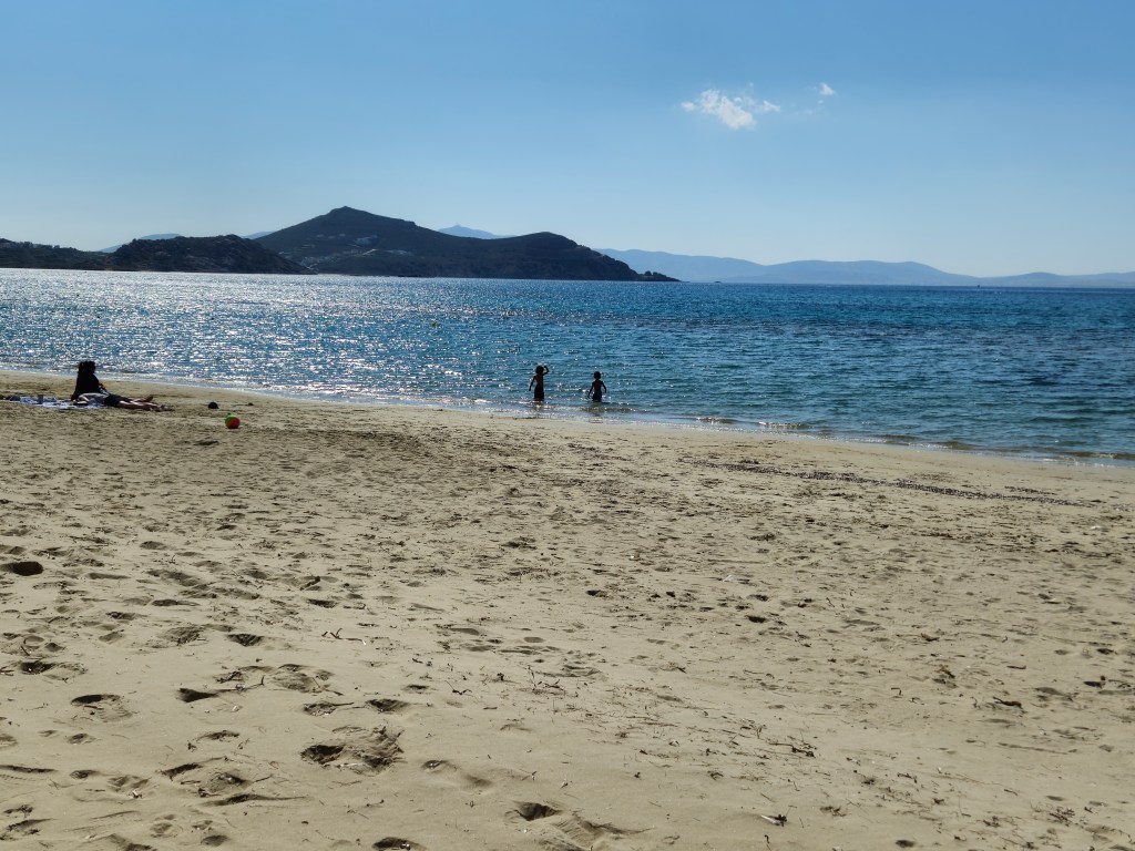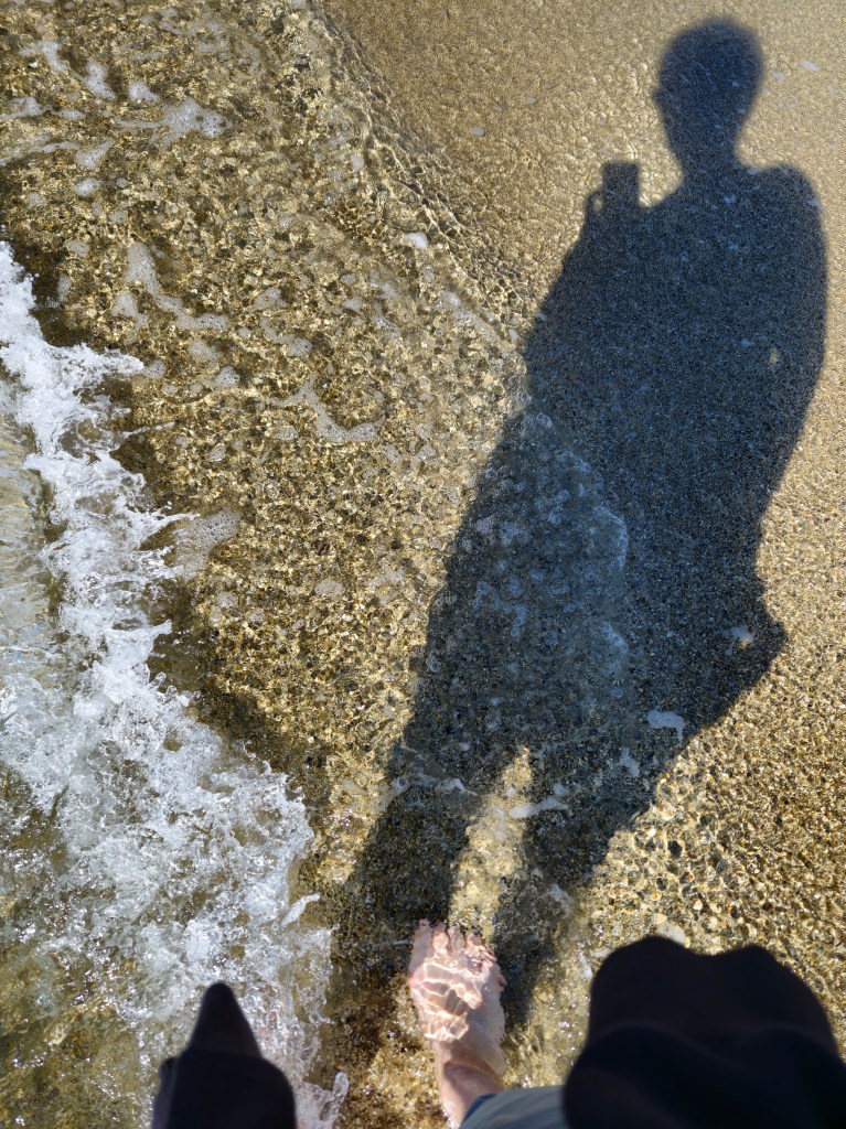 Sortie ensuite hors du village, vers les nouveaux quartiers lotis en bord de mer, où les studios neufs pour estivants s’entassent comme des cubes blancs. Étonnement, on se baigne. Il n’y a pas grand monde, on est quand-même vraiment hors-saison. J’enrage de ne pas avoir mon maillot car mes pieds me confirment ce que je vois : c’est parfaitement baignable, il y a peu de différence entre la température de l’air et celle de l’eau !