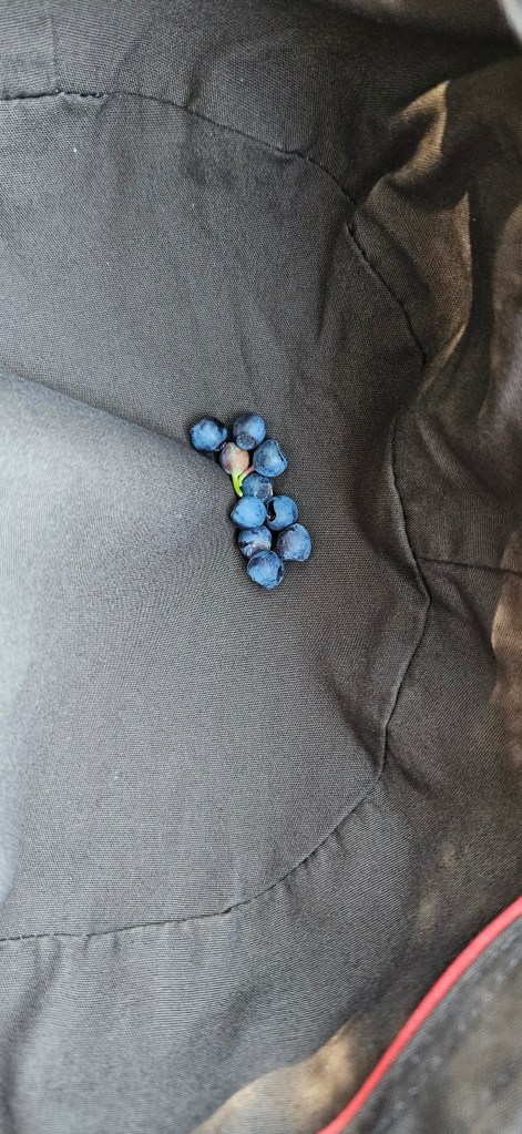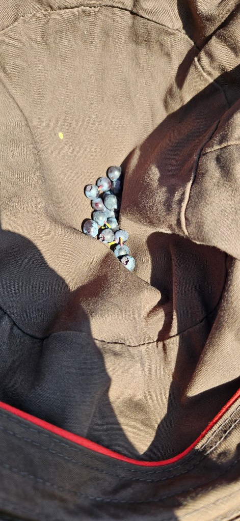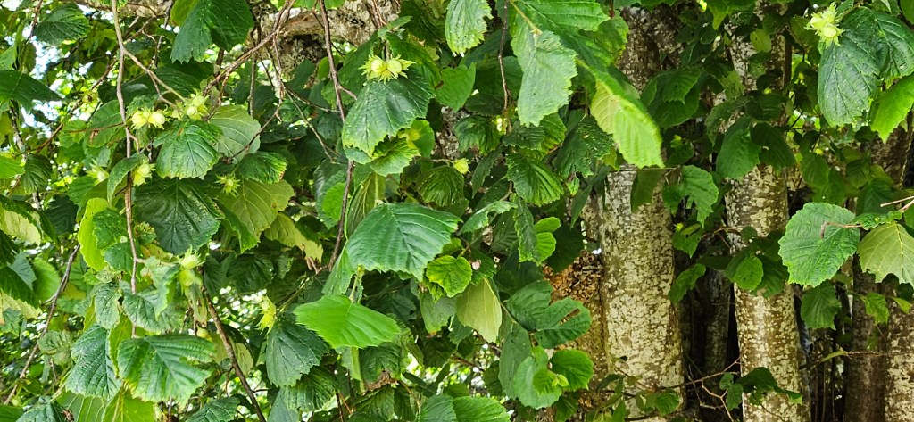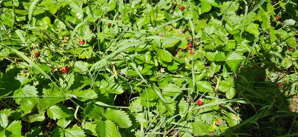 Il y a en même temps les fraises des bois bien mûres et les toutes premières myrtilles. Les noisettes sont vertes.