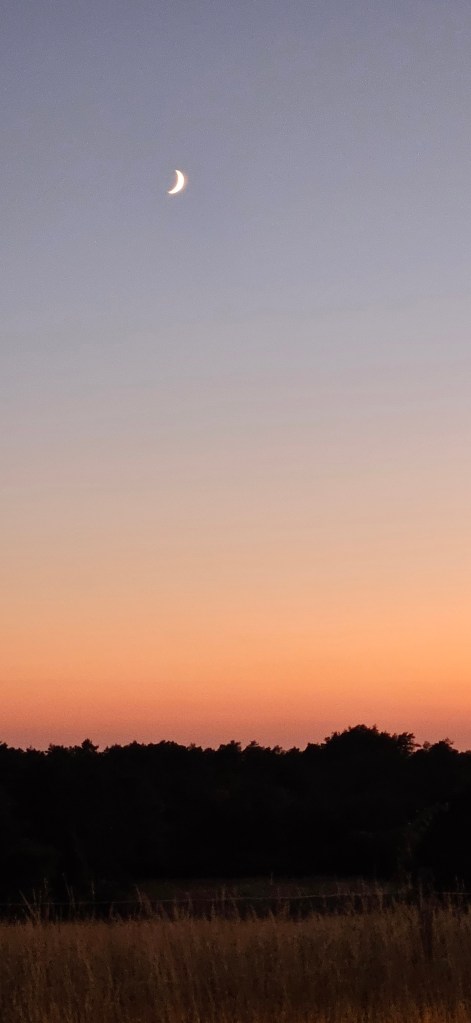 Juste avant la nuit, il est 21 heures, les cigales reprennent brièvement leurs craquètements. Puis tout s’éteint, la nuit se lève, picotée d’étoiles, et les grillons commencent à striduler. C’est une petite mélopée répétitive qui incite à veiller dehors.